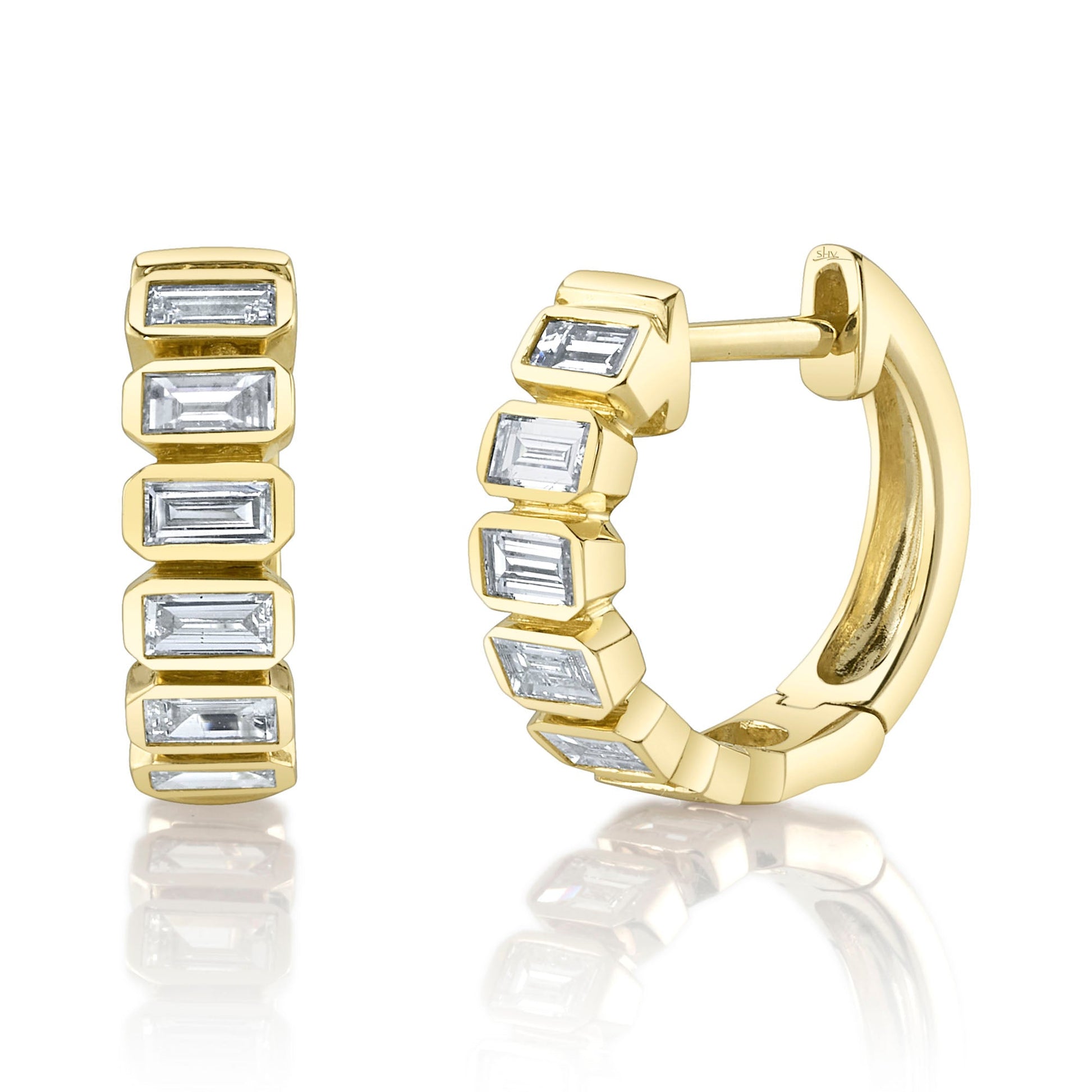 0.59CT 14K Y/G DIAMOND BAGUETTE HUGGIE EARRING