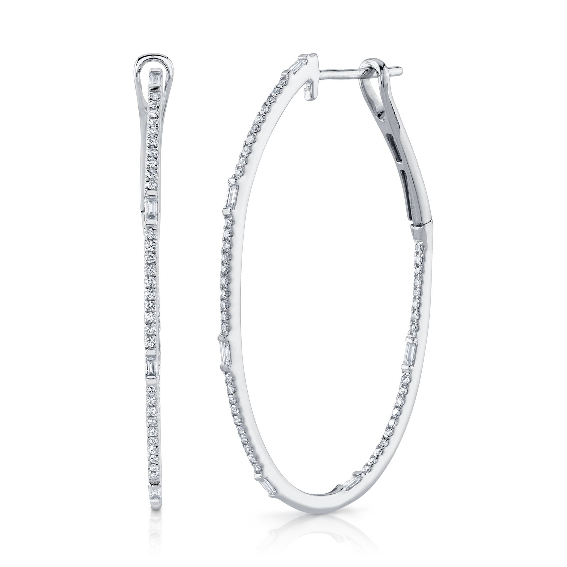 0.44CT 14K W/G DIAMOND BAGUETTE OVAL HOOP EARRING