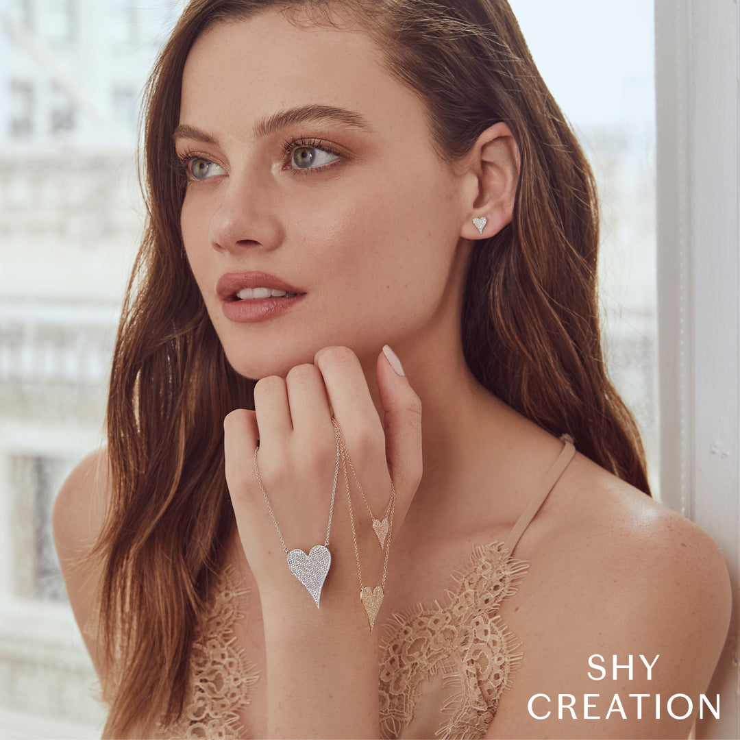 Shy Creation's uniquely elongated 'Amor' heart has become one of our signature designs. These iconic, diamond pave stud earrings are an absolute MUST have for any jewelry lover's collection!