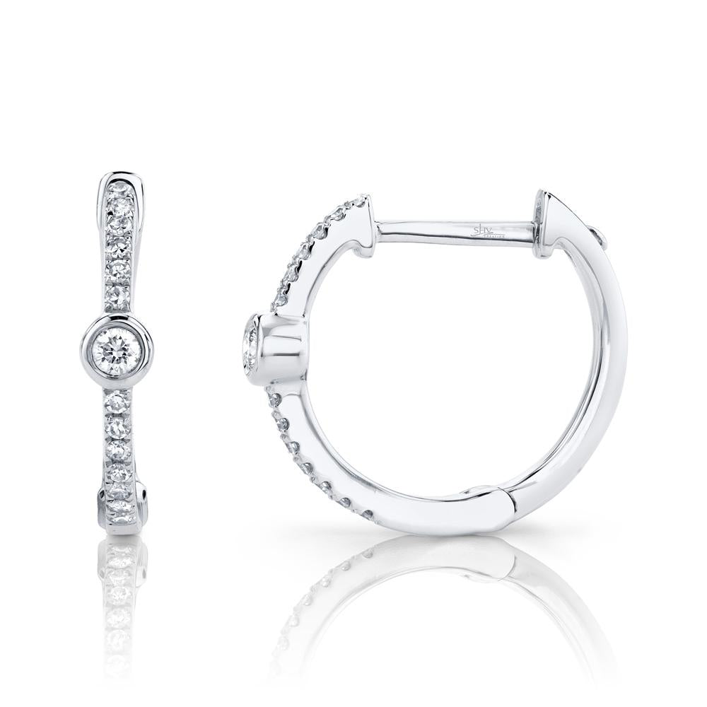 0.13CT 14K W/G DIAMOND BEZEL HOOP EARRING