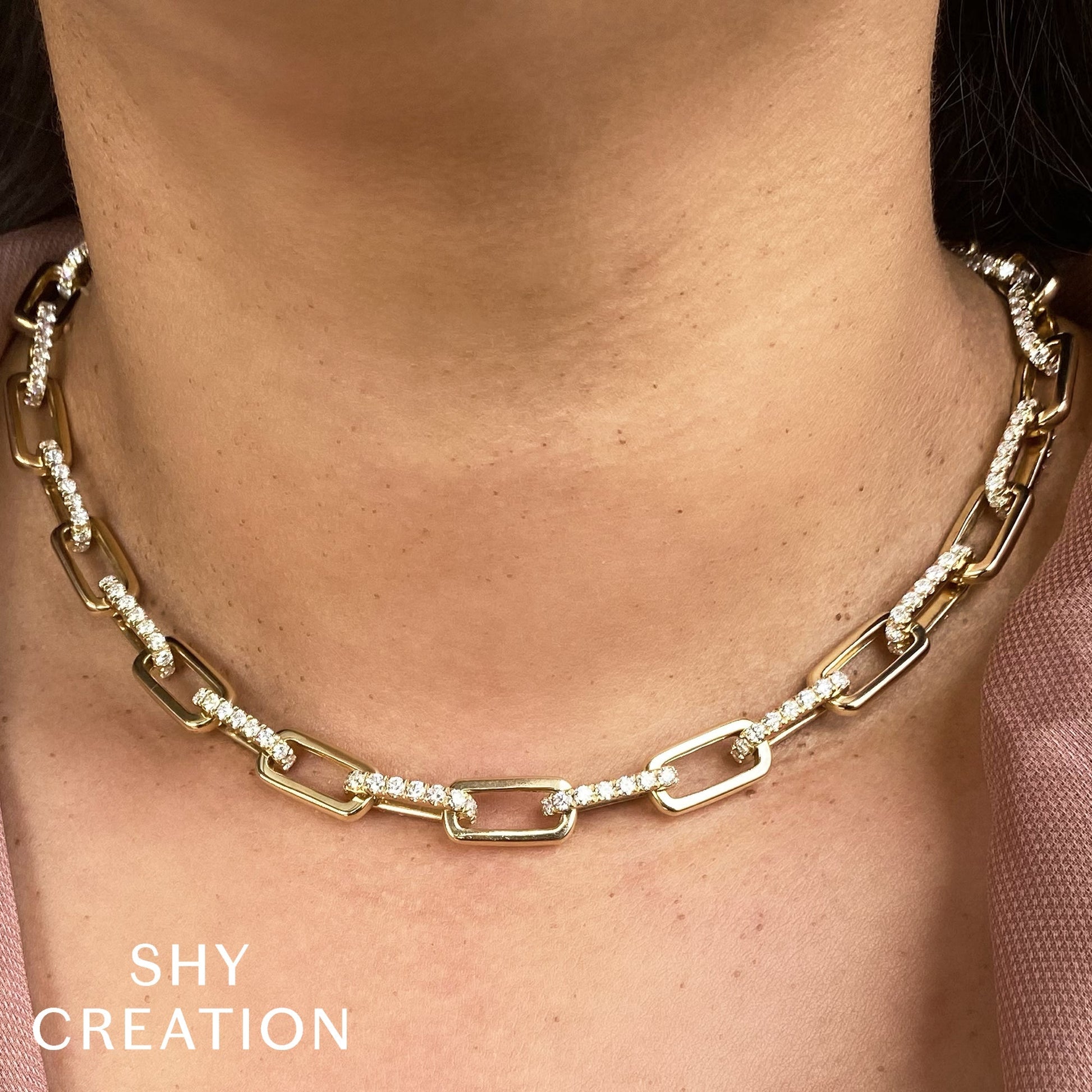 8.72CT 14K Y/G DIAMOND PAVE LINK NECKLACE