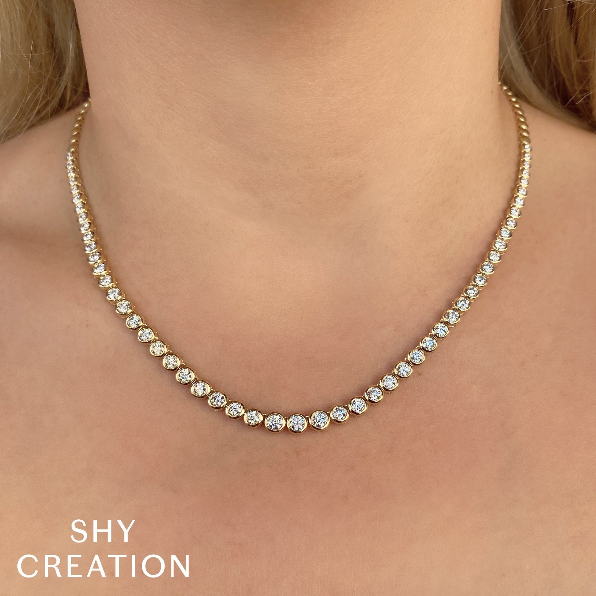 3.53CT 14K Y/G DIAMOND BEZEL TENNIS NECKLACE