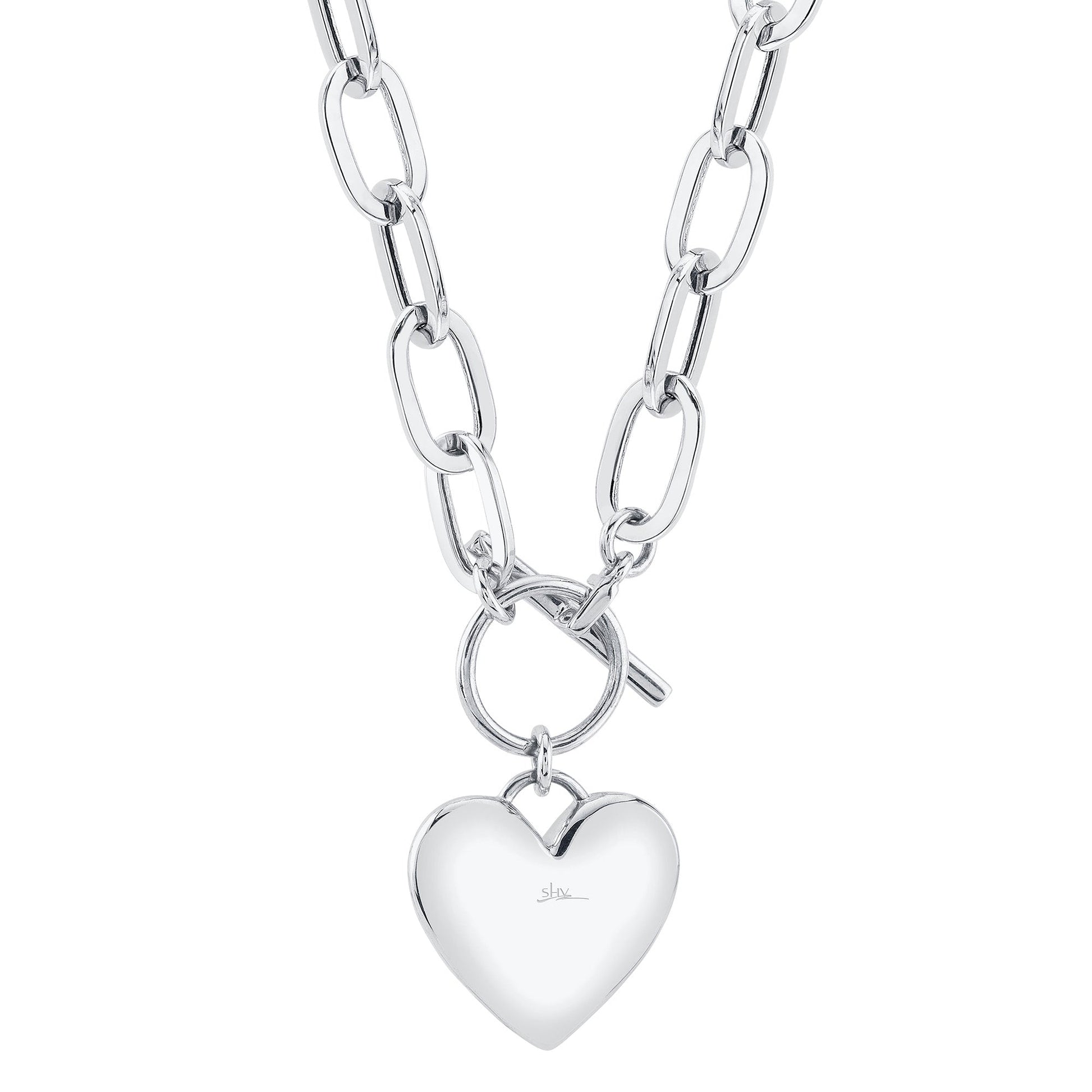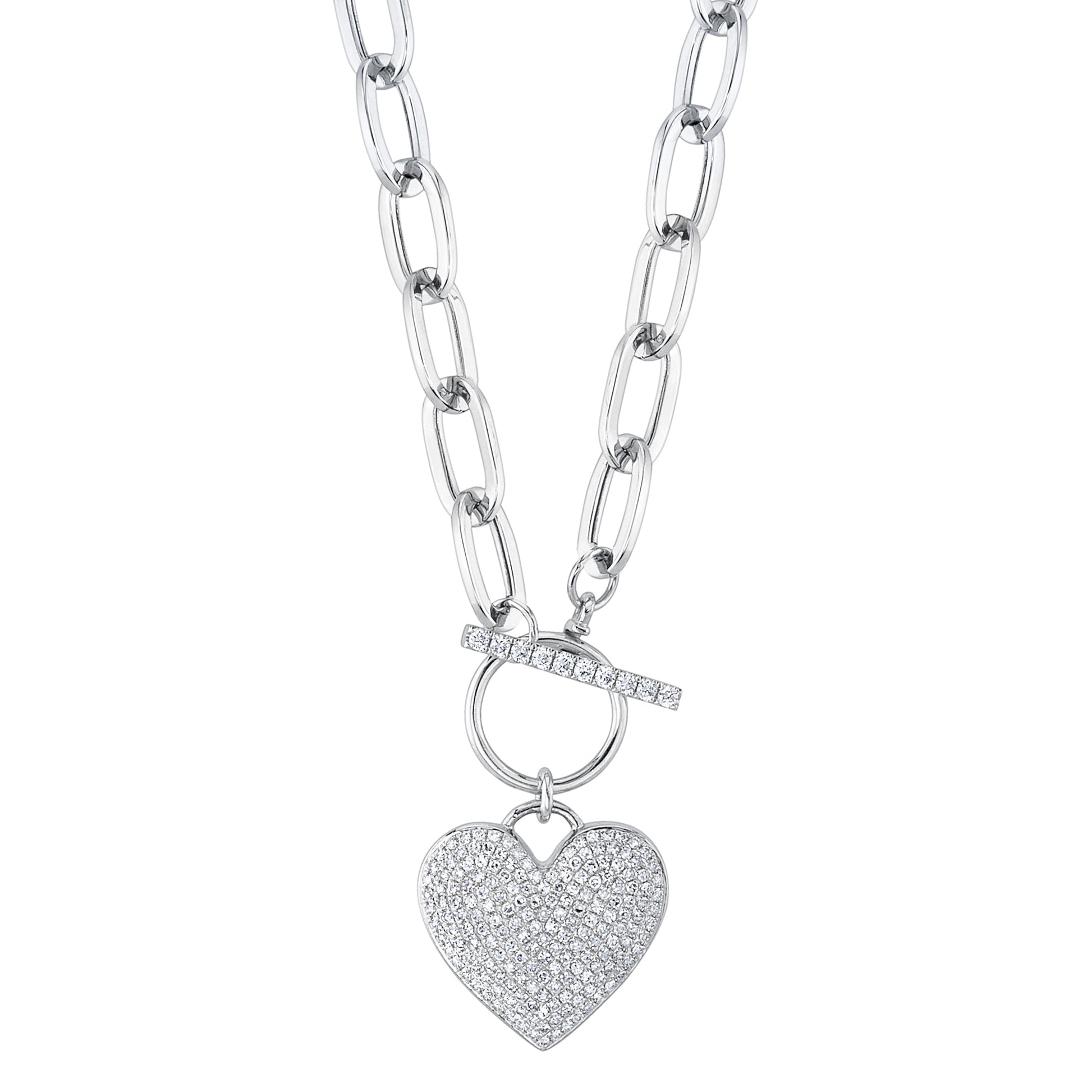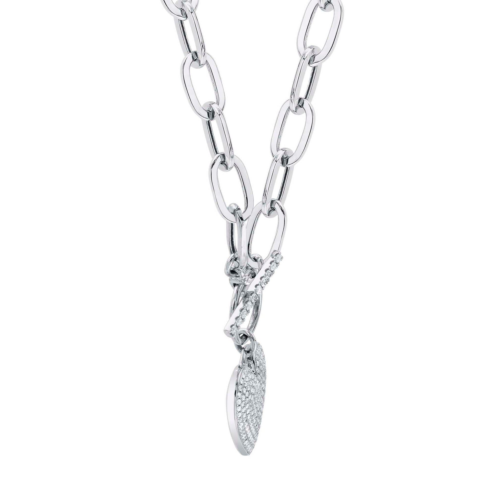0.50CT 14K W/G DIAMOND PAPER CLIP LINK PAVE HEART NECKLACE