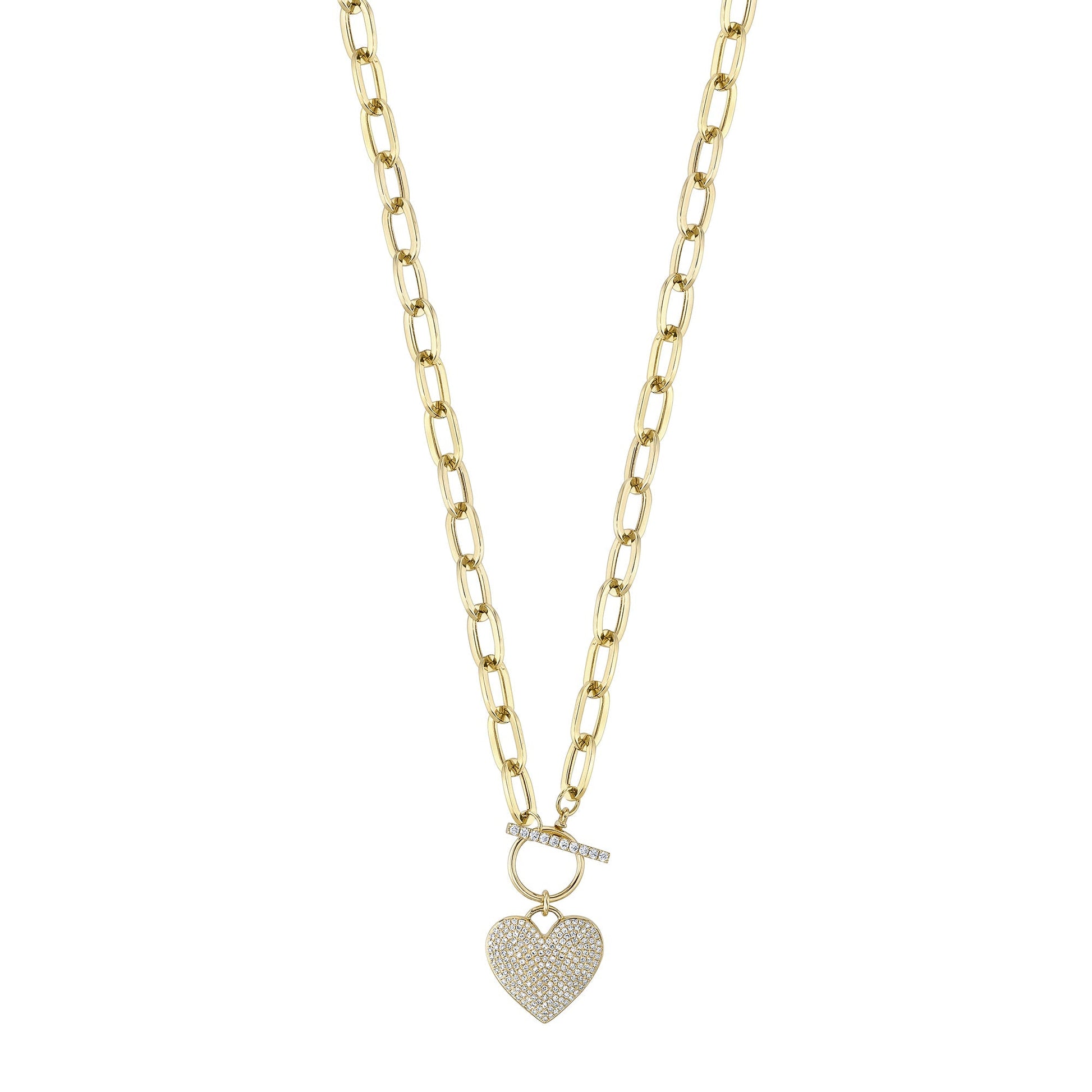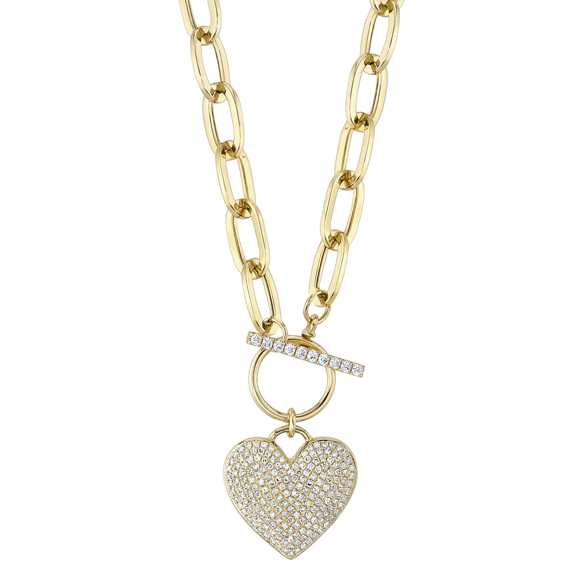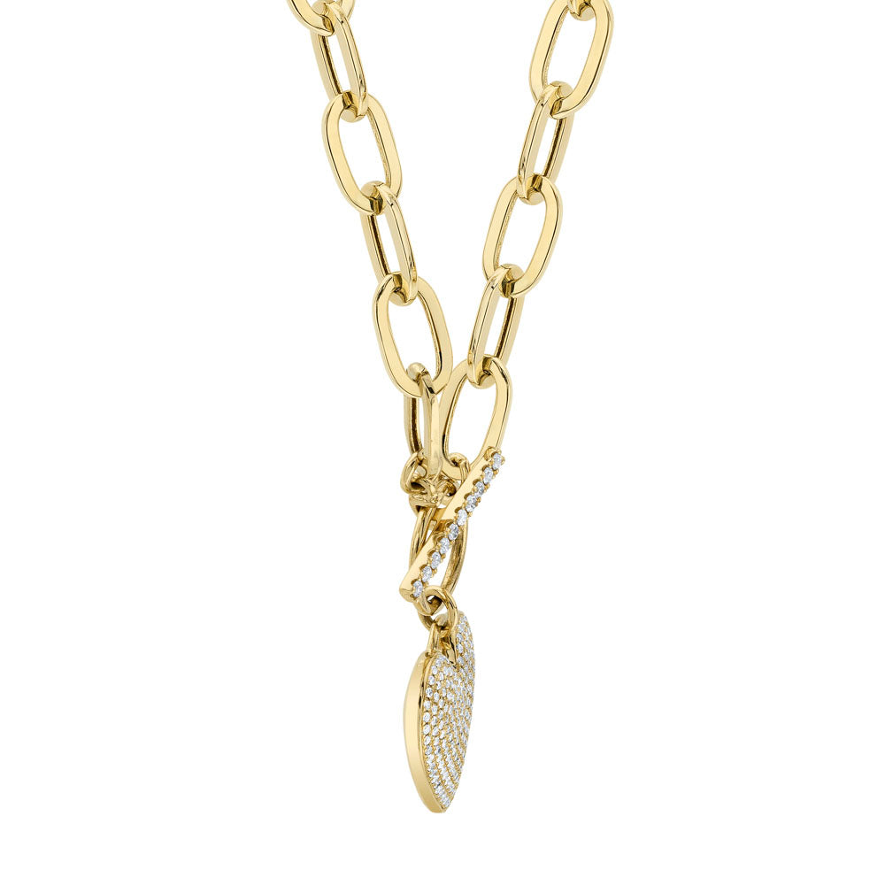 0.50CT 14K Y/G DIAMOND PAPER CLIP LINK PAVE HEART NECKLACE