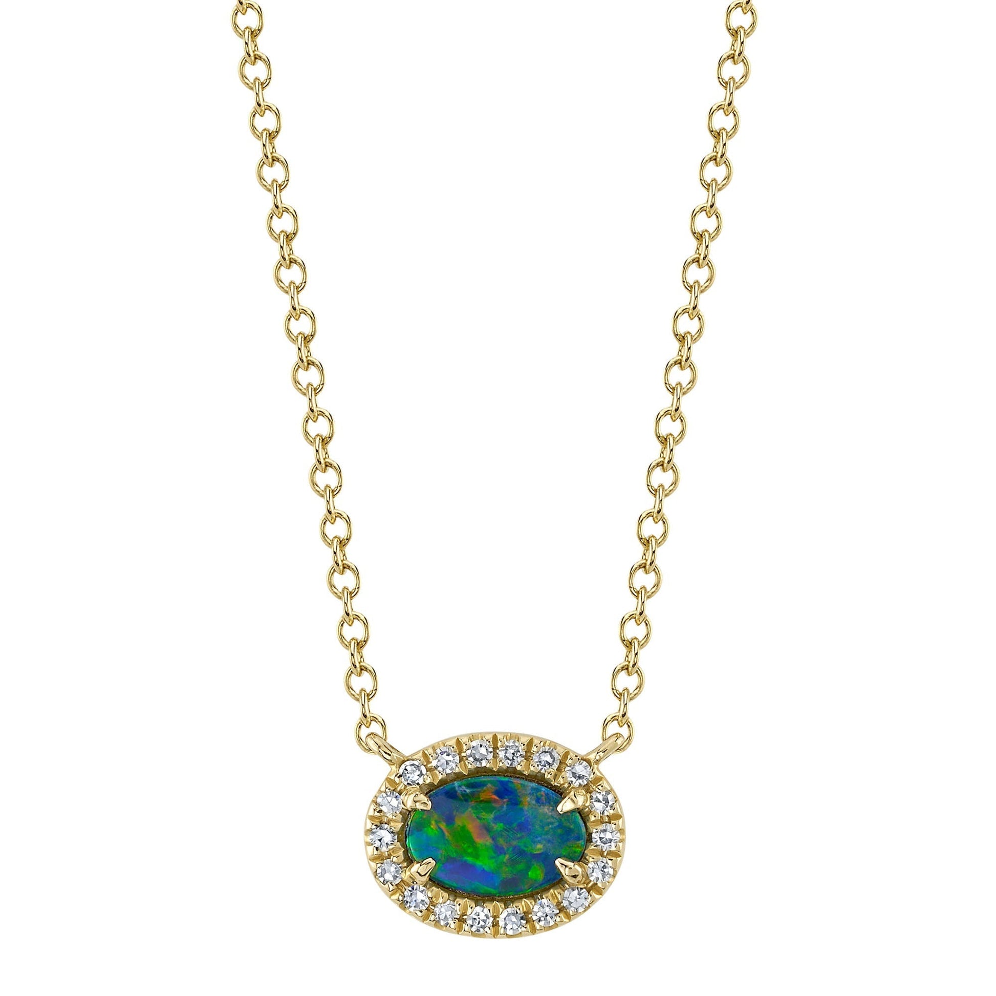 0.05CT DIAMOND & 0.33CT OPAL 14K Y/G NECKLACE