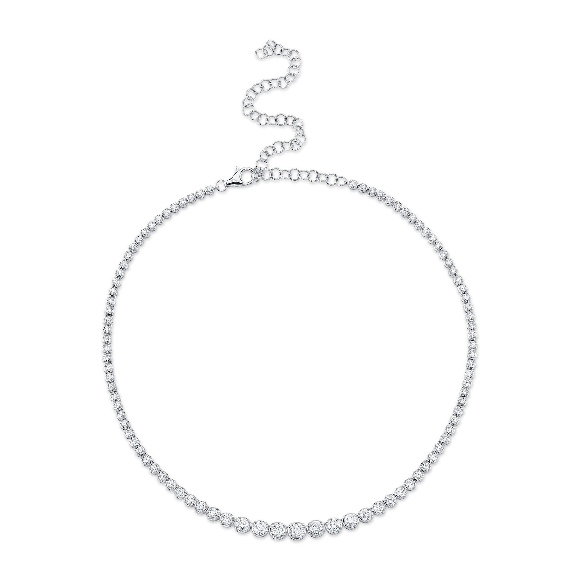 6.75CT 14K W/G DIAMOND CROWN SETTING TENNIS NECKLACE