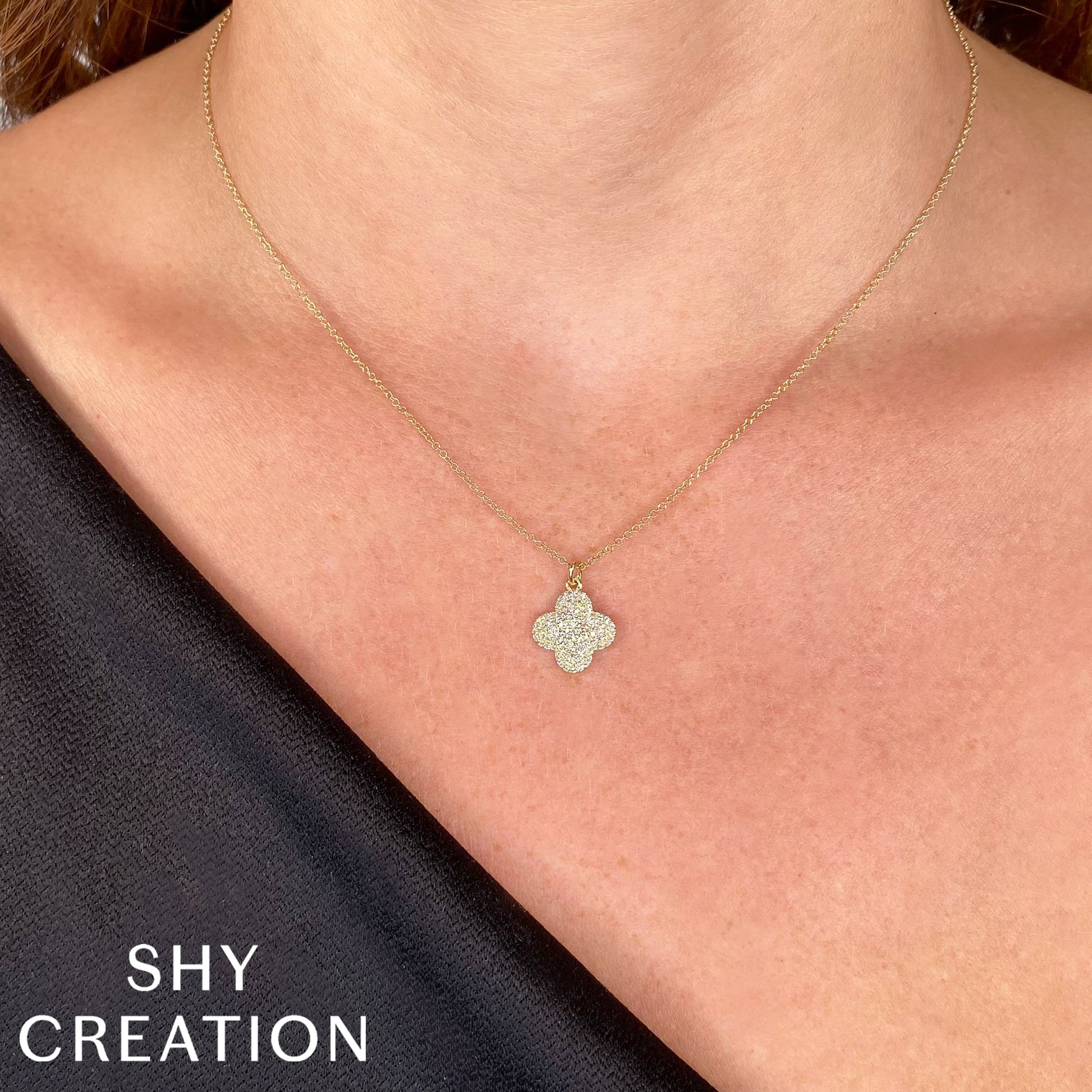 0.23CT 14K Y/G DIAMOND PAVE CLOVER NECKLACE
