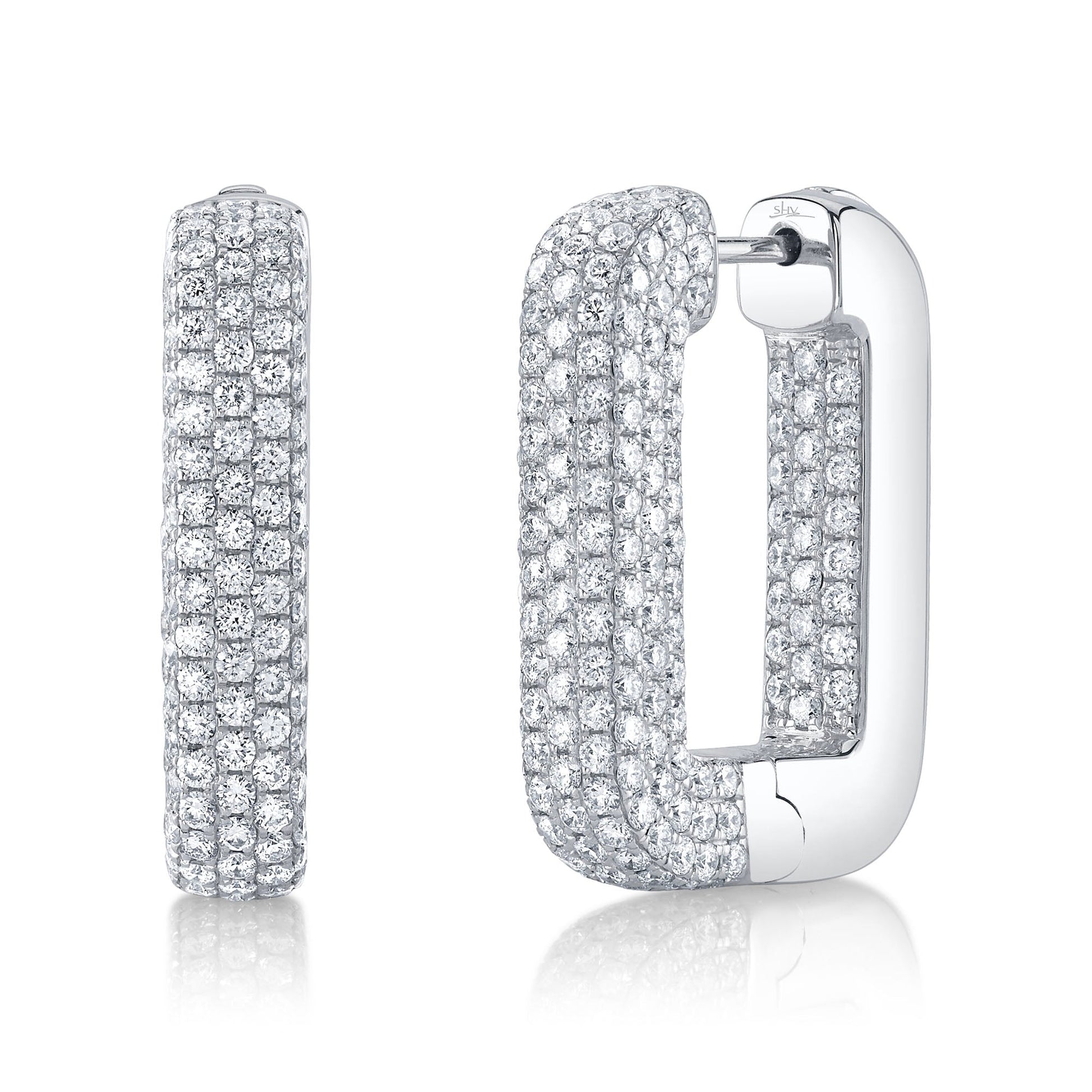 4.13CT 14K W/G DIAMOND PAVE RECTANGLE HOOP EARRING