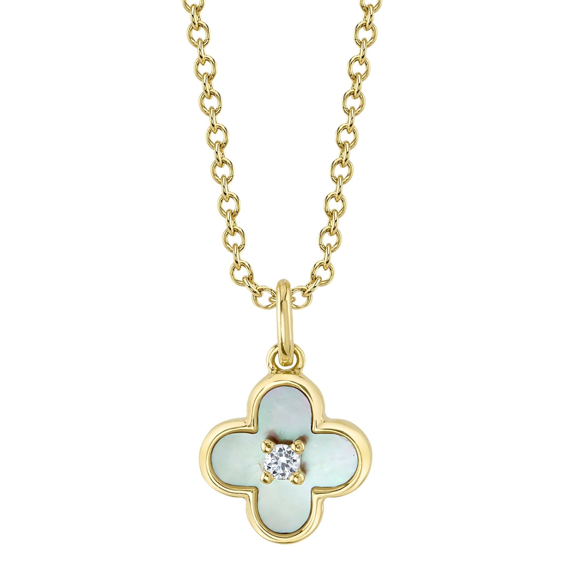 0.02CT DIAMOND & 0.33CT MOTHER OF PEARL 14K Y/G CLOVER NECKLACE