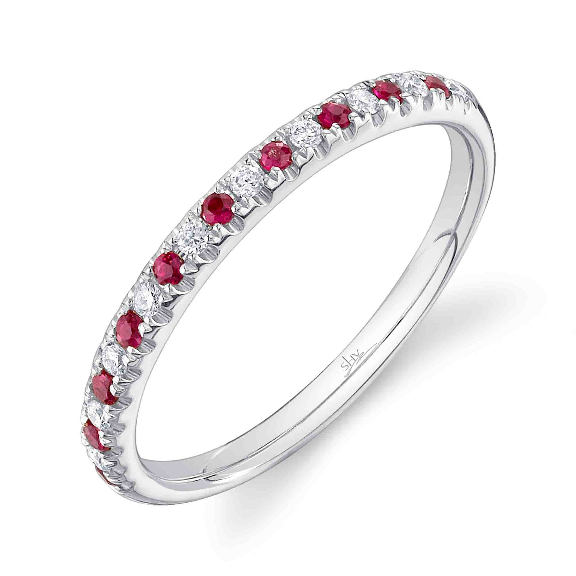 0.10CT DIAMOND & 0.10CT RUBY 14K W/G LADY'S BAND